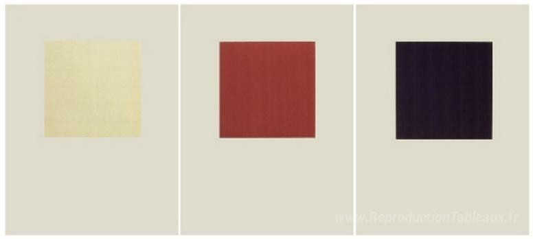 Nous vous proposons une reproduction artisanale sur toile du célèbre tableau 'Sans titre (crème / rouge / noir)' de Phil Sims, provenant du Musée de la Reproduction.