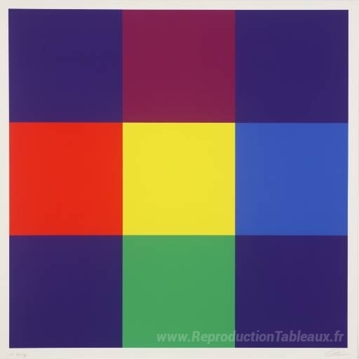 Nous vous proposons une reproduction artisanale sur toile du célèbre tableau 'Sans titre' de Richard Paul Lohse, provenant du Musée de la Reproduction.