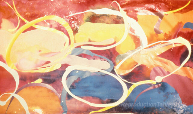 Nous vous proposons une reproduction artisanale sur toile du célèbre tableau 'Sans titre' de Ronnie Landfield, provenant du Musée de la Reproduction.