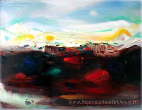 Nous vous proposons une reproduction artisanale sur toile du célèbre tableau 'Sans titre' de Chu Teh-Chun, provenant du Musée de la Reproduction.
