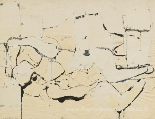 Nous vous proposons une reproduction artisanale sur toile du célèbre tableau 'Sans titre' de Conrad Marca-Relli, provenant du Musée de la Reproduction.
