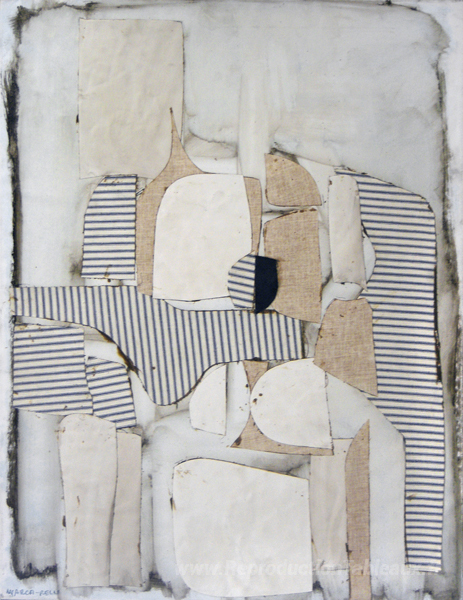 Nous vous proposons une reproduction artisanale sur toile du célèbre tableau 'Sans titre' de Conrad Marca-Relli, provenant du Musée de la Reproduction.