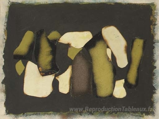 Nous vous proposons une reproduction artisanale sur toile du célèbre tableau 'Sans titre' de Conrad Marca-Relli, provenant du Musée de la Reproduction.