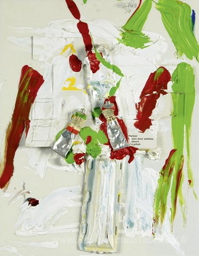 Nous vous proposons une reproduction artisanale sur toile du célèbre tableau 'Sans titre' de Dieter Roth, provenant du Musée de la Reproduction.