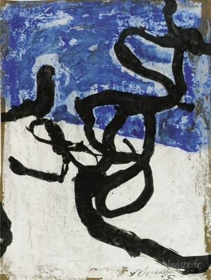 Nous vous proposons une reproduction artisanale sur toile du célèbre tableau 'Sans titre' de Emil Schumacher, provenant du Musée de la Reproduction.