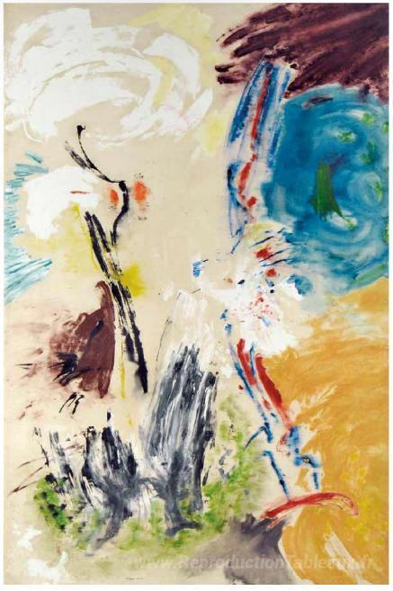 Nous vous proposons une reproduction artisanale sur toile du célèbre tableau 'Sans titre' de Friedel Dzubas, provenant du Musée de la Reproduction.