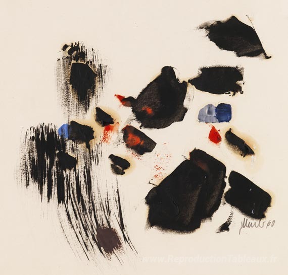 Nous vous proposons une reproduction artisanale sur toile du célèbre tableau 'Sans titre' de Fritz Winter, provenant du Musée de la Reproduction.