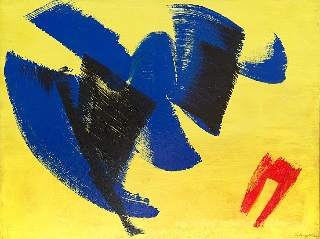 Nous vous proposons une reproduction artisanale sur toile du célèbre tableau 'Sans titre' de Gerard Schneider, provenant du Musée de la Reproduction.