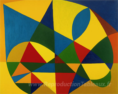 Nous vous proposons une reproduction artisanale sur toile du célèbre tableau 'Sans titre' de Harriet Korman, provenant du Musée de la Reproduction.