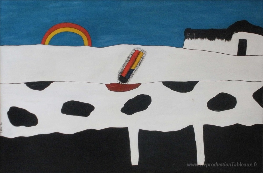 Nous vous proposons une reproduction artisanale sur toile du célèbre tableau 'Sans titre' de Alvaro Lapa, provenant du Musée de la Reproduction.