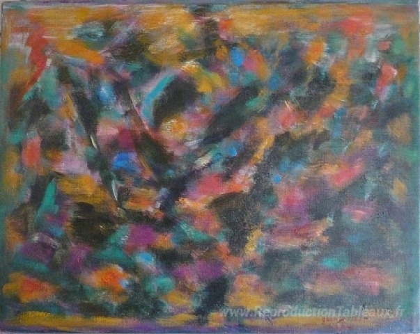 Nous vous proposons une reproduction artisanale sur toile du célèbre tableau 'Sans titre' de Jean Le Moal, provenant du Musée de la Reproduction.