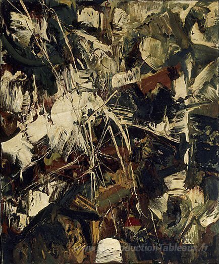 Nous vous proposons une reproduction artisanale sur toile du célèbre tableau 'Sans titre' de Jean-Paul Riopelle, provenant du Musée de la Reproduction.