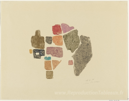 Nous vous proposons une reproduction artisanale sur toile du célèbre tableau 'Sans titre' de Julius Bissier, provenant du Musée de la Reproduction.