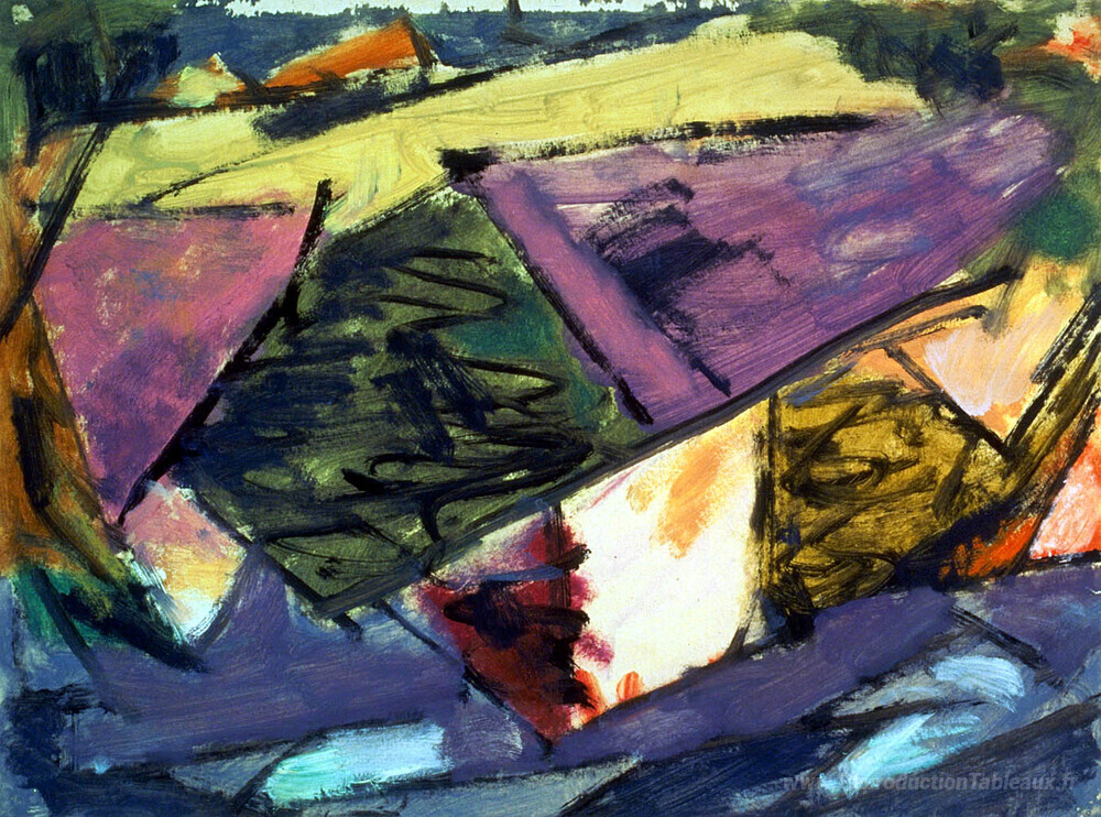 Nous vous proposons une reproduction artisanale sur toile du célèbre tableau 'Sans titre' de Karl Knaths, provenant du Musée de la Reproduction.