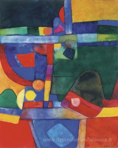 Nous vous proposons une reproduction artisanale sur toile du célèbre tableau 'Sans titre' de Maurice Esteve, provenant du Musée de la Reproduction.