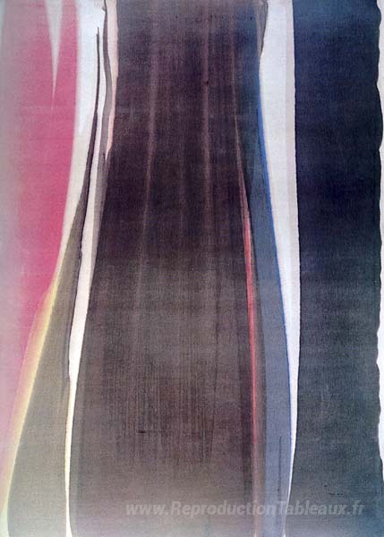 Nous vous proposons une reproduction artisanale sur toile du célèbre tableau 'Sans titre' de Morris Louis, provenant du Musée de la Reproduction.