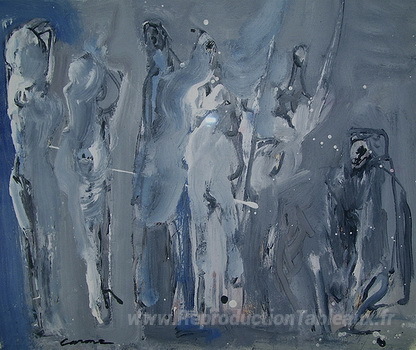 Nous vous proposons une reproduction artisanale sur toile du célèbre tableau 'Sans titre' de Nicolas Carone, provenant du Musée de la Reproduction.