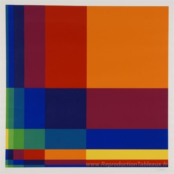 Nous vous proposons une reproduction artisanale sur toile du célèbre tableau 'Sechs vertikale Systematische Farbreihen mit orangem Quadrat rec' de Richard Paul Lohse, provenant du Musée de la Reproduction.
