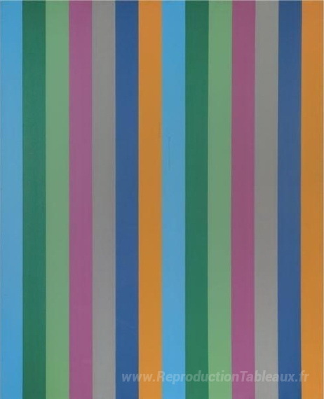Nous vous proposons une reproduction artisanale sur toile du célèbre tableau 'Seriel bleu-oocre' de Guido Molinari, provenant du Musée de la Reproduction.