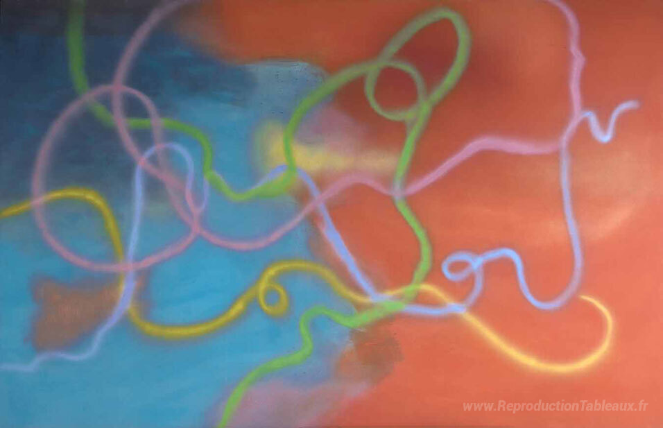 Nous vous proposons une reproduction artisanale sur toile du célèbre tableau 'Serpente' de Dan Christensen, provenant du Musée de la Reproduction.