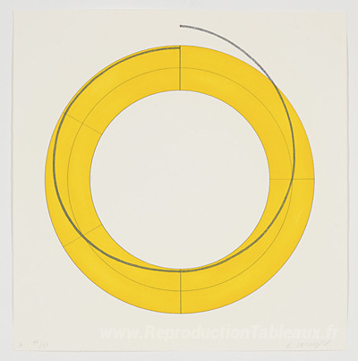 Nous vous proposons une reproduction artisanale sur toile du célèbre tableau 'Sonner un (jaune)' de Robert Mangold, provenant du Musée de la Reproduction.