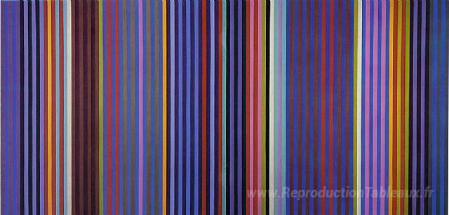 Nous vous proposons une reproduction artisanale sur toile du célèbre tableau 'Sorcière rouge' de Gene Davis, provenant du Musée de la Reproduction.