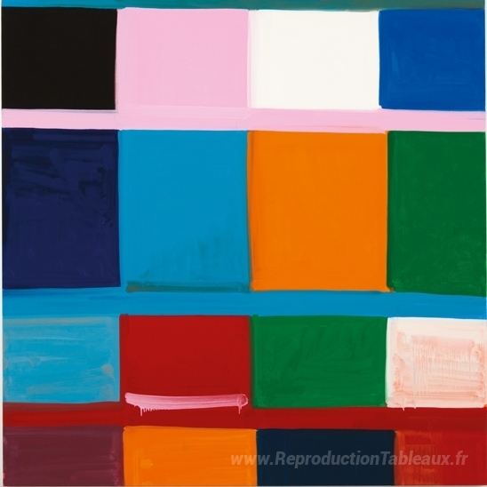 Nous vous proposons une reproduction artisanale sur toile du célèbre tableau 'Sourire nigérian' de Stanley Whitney, provenant du Musée de la Reproduction.