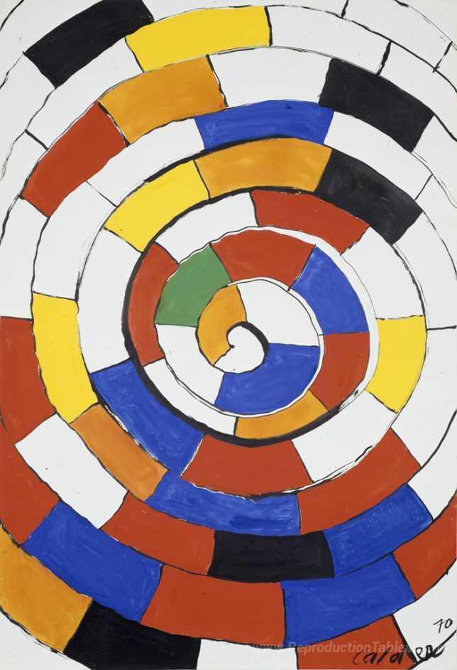 Nous vous proposons une reproduction artisanale sur toile du célèbre tableau 'Spirale' de Alexander Calder, provenant du Musée de la Reproduction.
