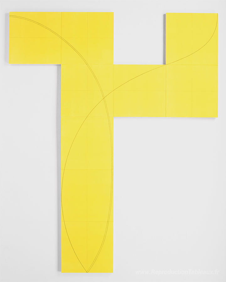 Nous vous proposons une reproduction artisanale sur toile du célèbre tableau 'Structure de la colonne IX' de Robert Mangold, provenant du Musée de la Reproduction.