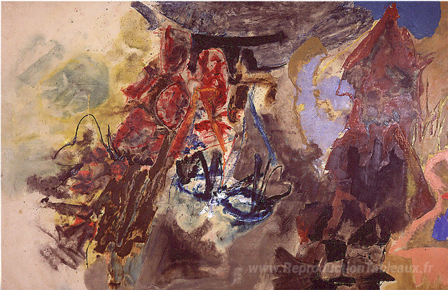 Nous vous proposons une reproduction artisanale sur toile du célèbre tableau 'Sur la colline' de Friedel Dzubas, provenant du Musée de la Reproduction.