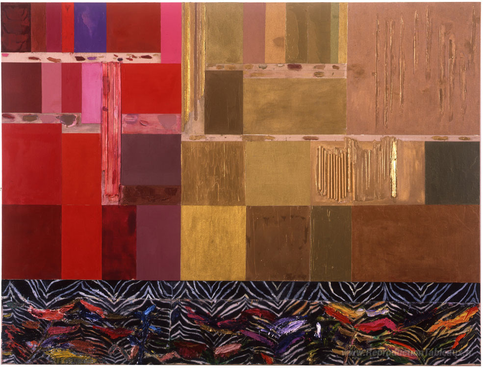 Nous vous proposons une reproduction artisanale sur toile du célèbre tableau 'Symphonie V' de Joan Snyder, provenant du Musée de la Reproduction.