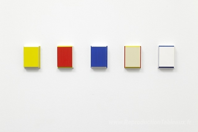 Nous vous proposons une reproduction artisanale sur toile du célèbre tableau 'Tag und Nacht I F1-F5' de Imi Knoebel, provenant du Musée de la Reproduction.
