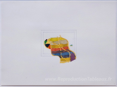 Nous vous proposons une reproduction artisanale sur toile du célèbre tableau 'Thème avec jaune et vert (pour un mur vertical)' de Richard Tuttle, provenant du Musée de la Reproduction.
