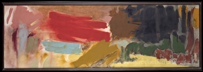 Nous vous proposons une reproduction artisanale sur toile du célèbre tableau 'Tournant' de Friedel Dzubas, provenant du Musée de la Reproduction.
