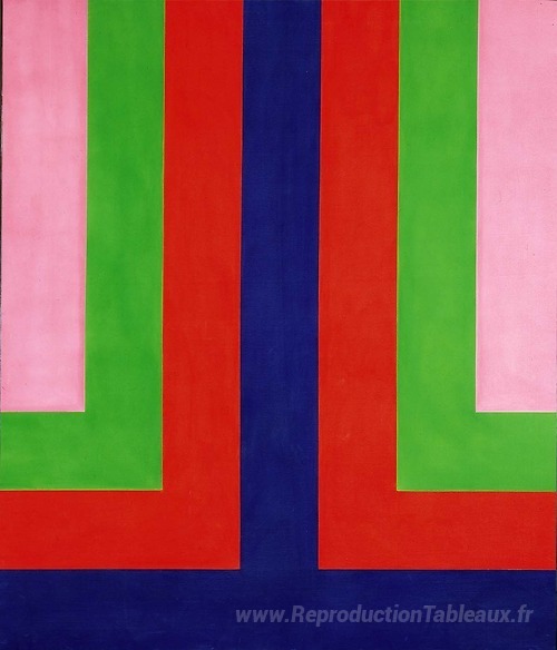 Nous vous proposons une reproduction artisanale sur toile du célèbre tableau 'Tripla Doppia' de Howard Mehring, provenant du Musée de la Reproduction.