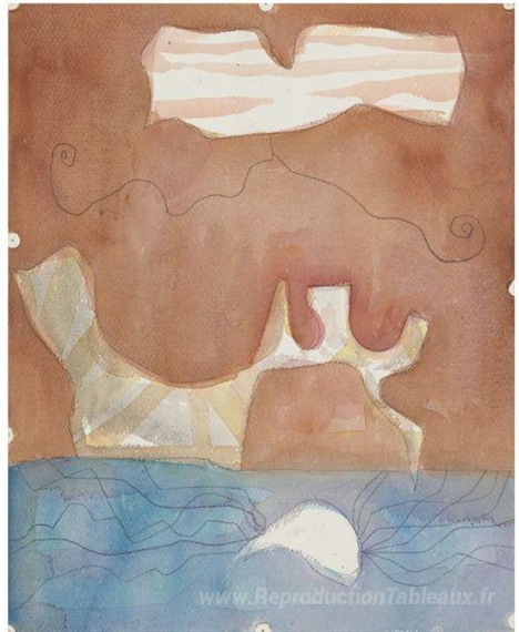 Nous vous proposons une reproduction artisanale sur toile du célèbre tableau 'Untitled (bleu et brûlé orange)' de William Baziotes, provenant du Musée de la Reproduction.