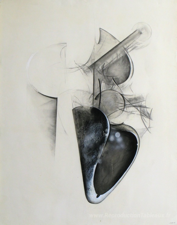 Nous vous proposons une reproduction artisanale sur toile du célèbre tableau 'Untitled (série Shoetree)' de Jay DeFeo, provenant du Musée de la Reproduction.