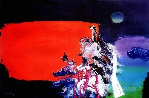 Nous vous proposons une reproduction artisanale sur toile du célèbre tableau 'Vento Vermelho' de Manabu Mabe, provenant du Musée de la Reproduction.