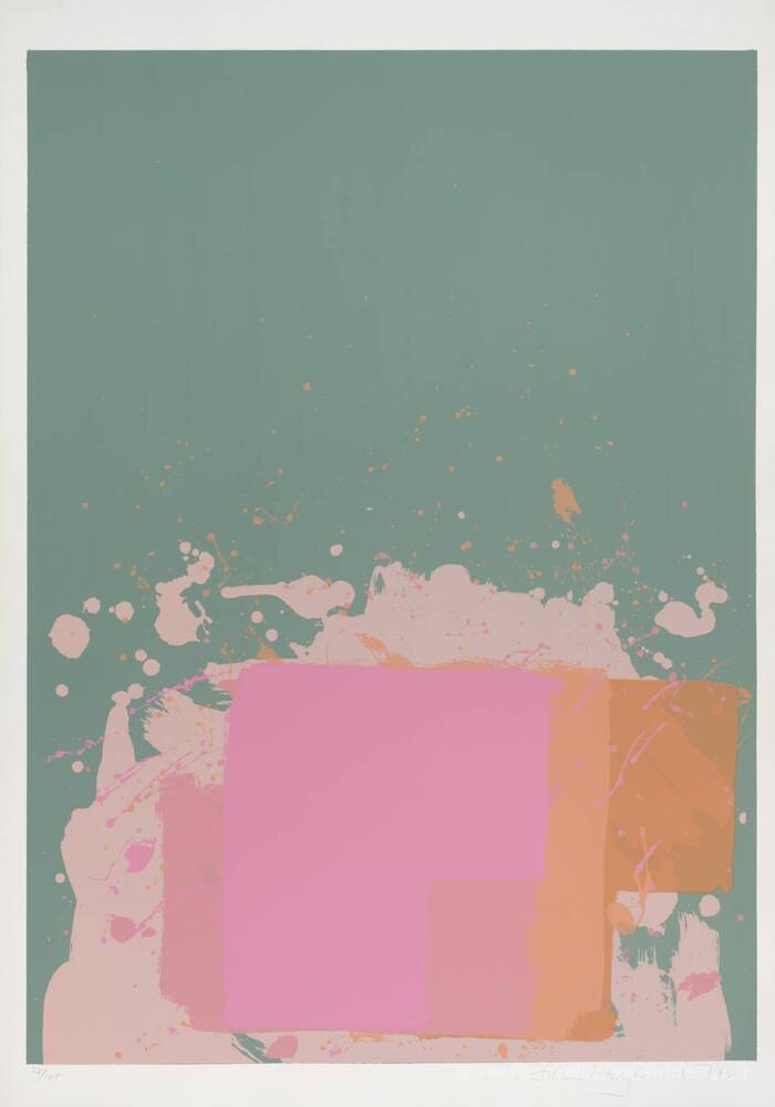 Nous vous proposons une reproduction artisanale sur toile du célèbre tableau 'Vert, orange, rose' de John Hoyland, provenant du Musée de la Reproduction.