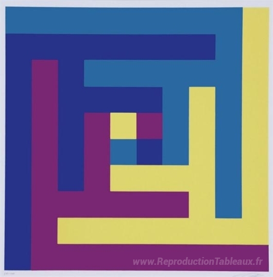 Nous vous proposons une reproduction artisanale sur toile du célèbre tableau 'Vier verbundene Gruppen' de Richard Paul Lohse, provenant du Musée de la Reproduction.