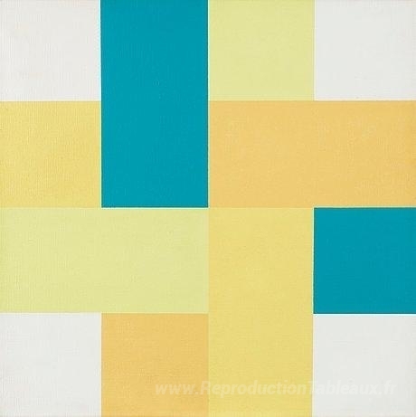 Nous vous proposons une reproduction artisanale sur toile du célèbre tableau 'Vier verschr?nkte Farbgruppen mit blau grünen Akzenten' de Richard Paul Lohse, provenant du Musée de la Reproduction.