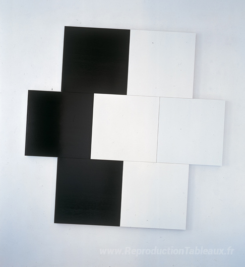 Nous vous proposons une reproduction artisanale sur toile du célèbre tableau 'Weiss und Schwarz-4' de Imi Knoebel, provenant du Musée de la Reproduction.