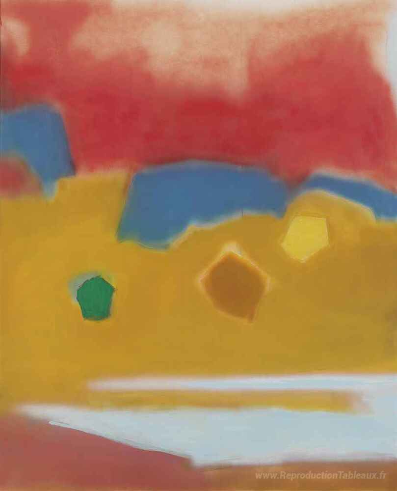 Nous vous proposons une reproduction artisanale sur toile du célèbre tableau 'Zarzuela' de Esteban Vicente, provenant du Musée de la Reproduction.
