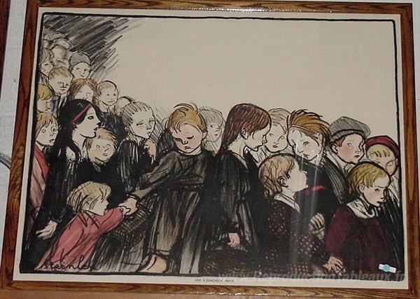 Nous vous proposons une reproduction artisanale sur toile du célèbre tableau 'Affiche des enfants' de Theophile Steinlen, provenant du Musée de la Reproduction.