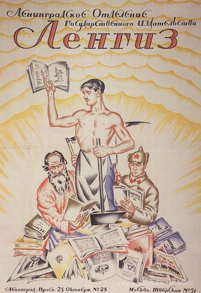 Nous vous proposons une reproduction artisanale sur toile du célèbre tableau 'Affiche Leningrad Department of State Publishing (Lengiz)' de Boris Kustodiev, provenant du Musée de la Reproduction.