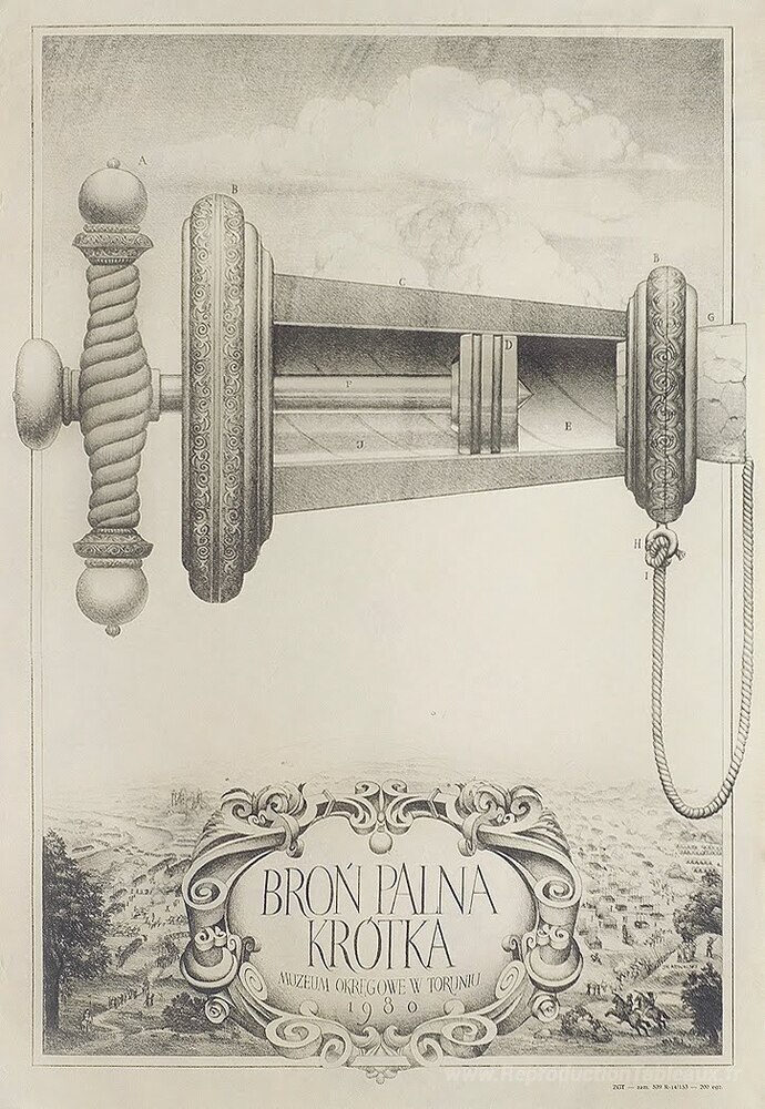 Nous vous proposons une reproduction artisanale sur toile du célèbre tableau 'Armes à feu courtes' de Jacek Yerka, provenant du Musée de la Reproduction.