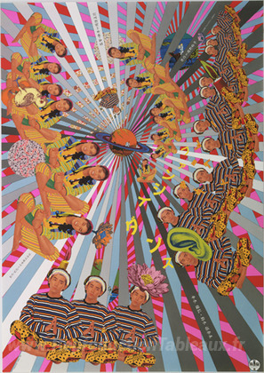 Nous vous proposons une reproduction artisanale sur toile du célèbre tableau 'Ficture' de Tadanori Yokoo, provenant du Musée de la Reproduction.