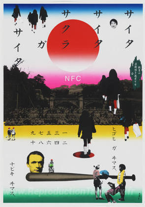 Nous vous proposons une reproduction artisanale sur toile du célèbre tableau 'NFC' de Tadanori Yokoo, provenant du Musée de la Reproduction.
