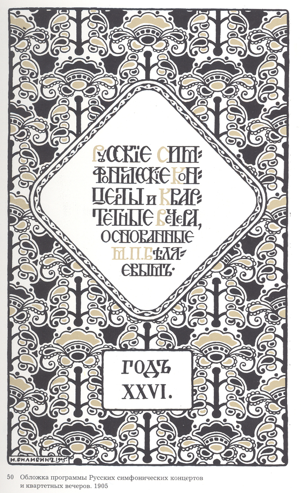 Nous vous proposons une reproduction artisanale sur toile du célèbre tableau 'Programme des concerts symphoniques russes' de Ivan Bilibin, provenant du Musée de la Reproduction.