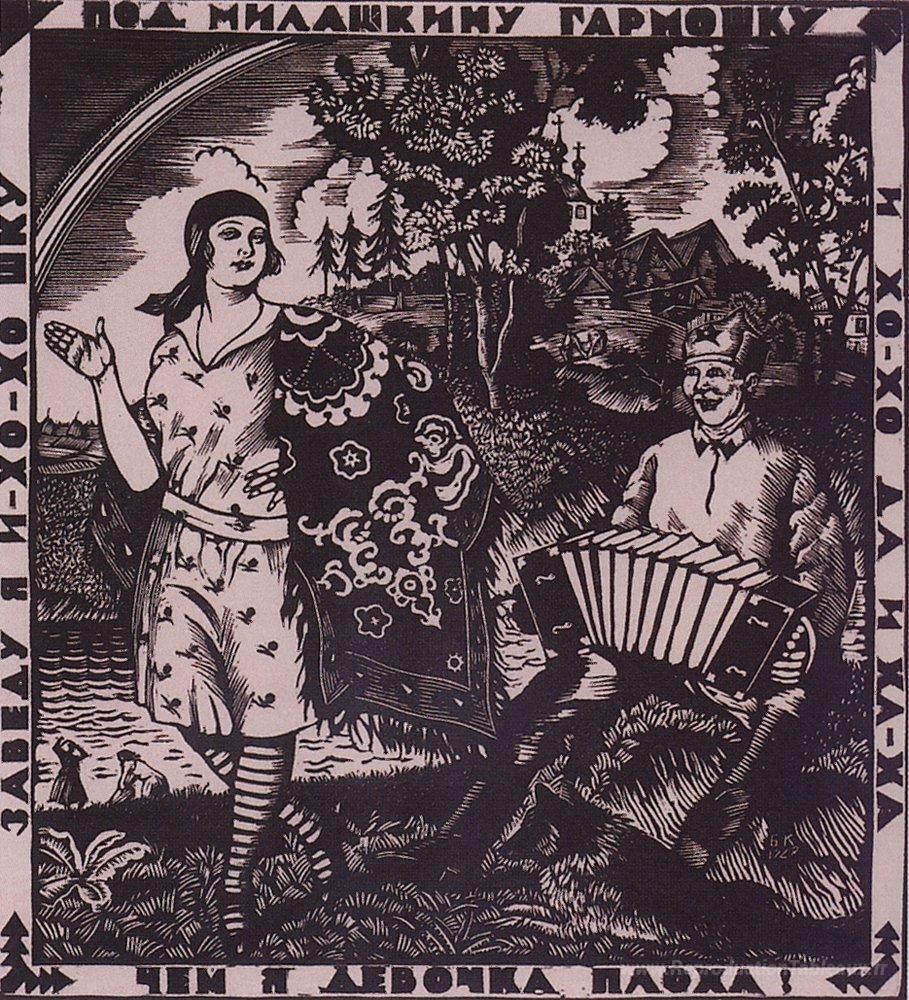 Nous vous proposons une reproduction artisanale sur toile du célèbre tableau 'Sous l'harmonica de Honey' de Boris Kustodiev, provenant du Musée de la Reproduction.